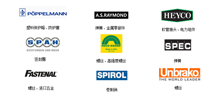 五金品牌:UnbrakoHOLO-KROMESPECFASTENALKORNYLAK、Busak+Shamban、KAPSTO、SPAHSPIROLWALDES TRUARCHEYCOROTARY SYSTEMSPOPPELMANNA.S.RAYMOND